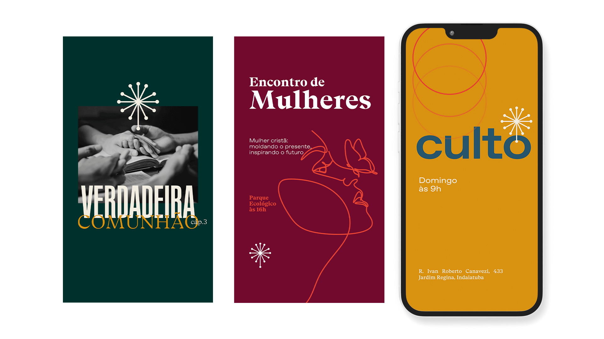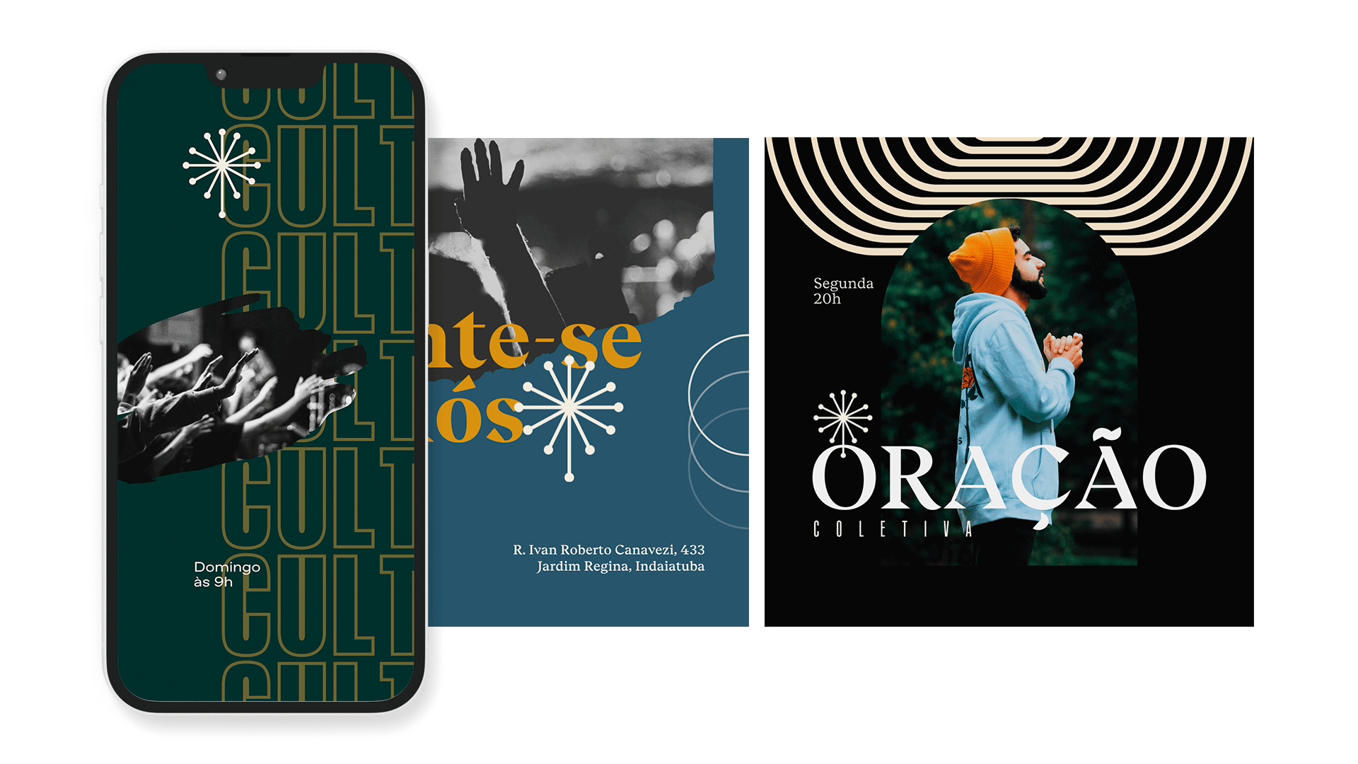 The design for Movimento Convergência's social media harmoniously blends vibrant colors with a sober aesthetic, creating an engaging yet respectful online identity. Carefully chosen elements, from the color palette to the typography, ensure each post resonates with younger audiences while staying true to the church’s core values and contemporary style.