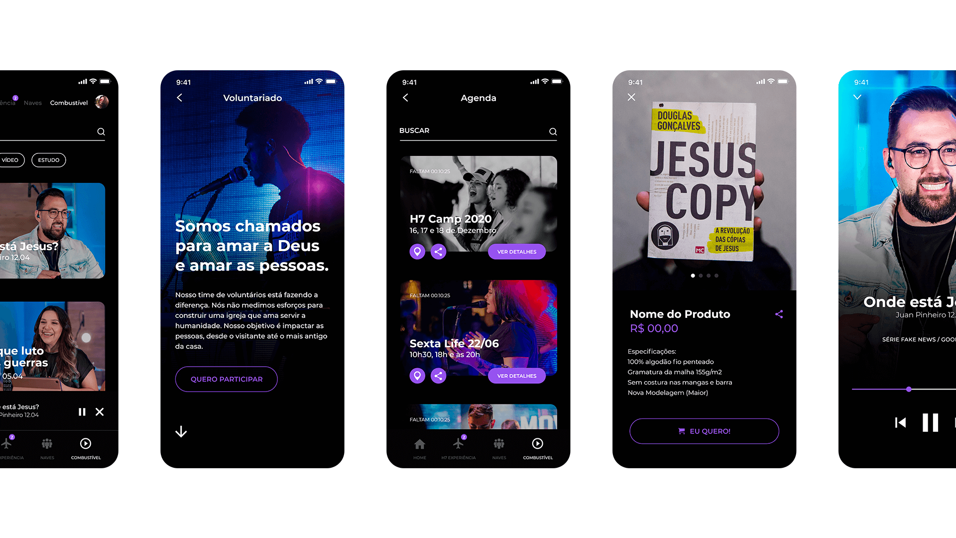 To develop the design, extensive research was conducted not only on church apps but also on streaming apps and other modern design references, with the aim of bringing these concepts into the church context.